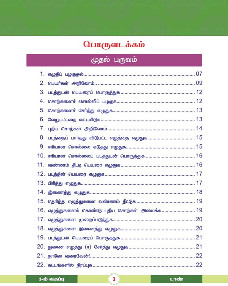 For 1st Std. students, Tamil Grammar part with explanations and exercises.