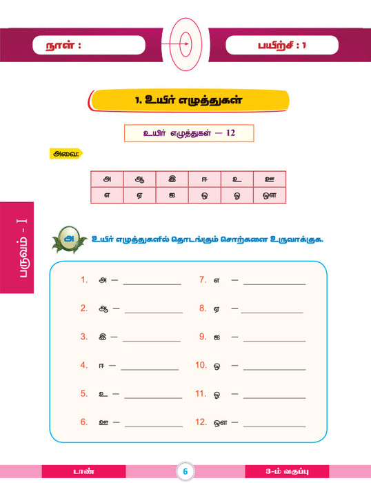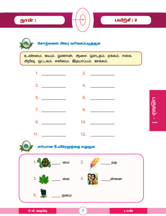 For 3rd Std. students, Tamil Grammar part with explanations and exercises.