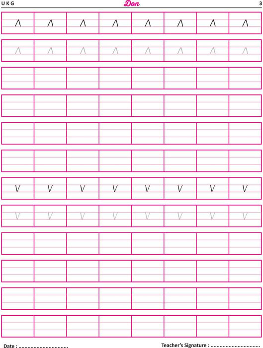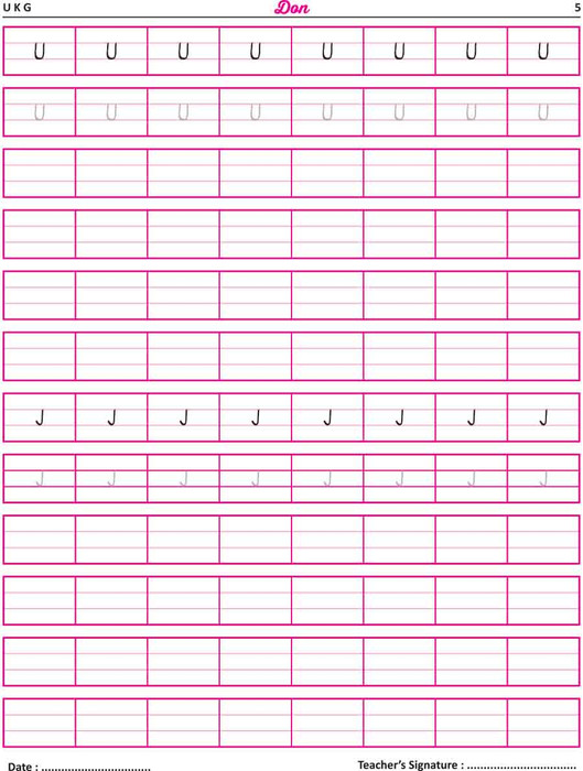 For UKG children, starts from writing letters to small words.