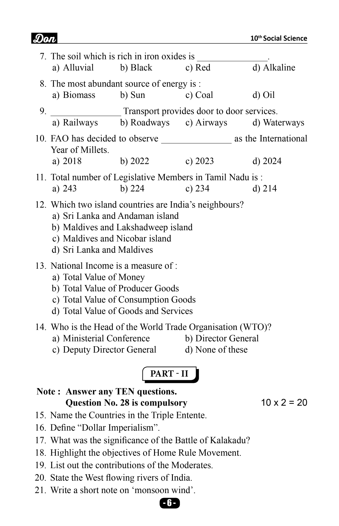 Q Book for 10th Social Science contains almost all the Govt. Qn. papers and PTA Qn. Papers. Besides these, Don Model Question papers are also given in this book. In many Govt. exams, some questions are repeated. And studying these questions thoroughly will help the students score high in board exams and also help them finish the exam in time.