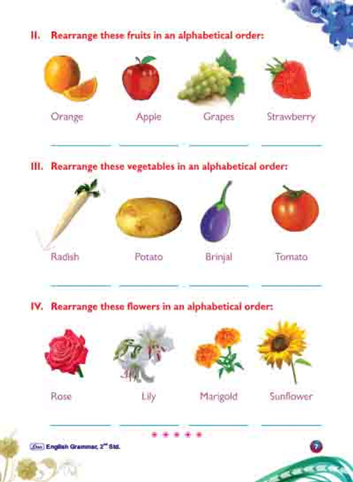 For 2nd Std. students, Grammar part with explanations and exercises.