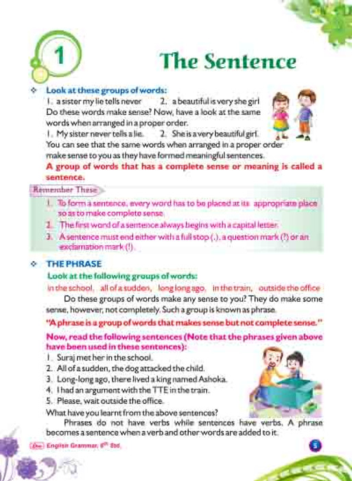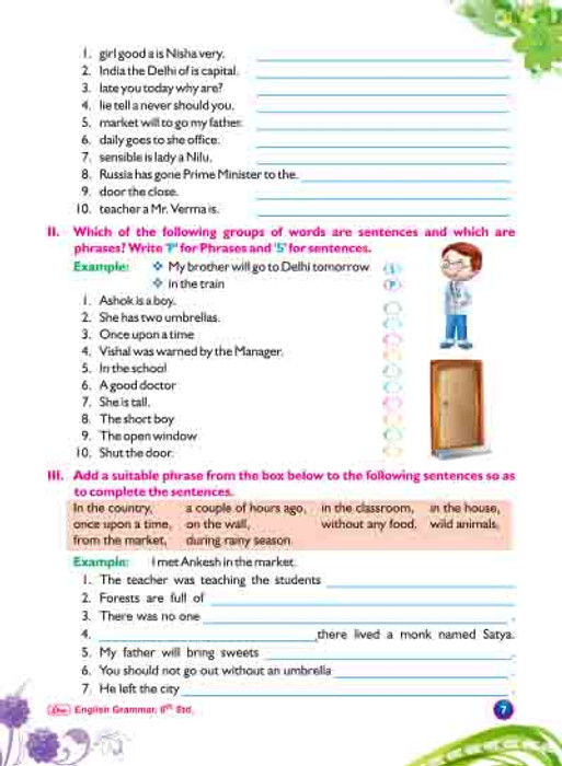 For 6th Std. students, Grammar part with explanations and exercises.