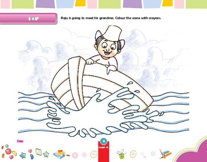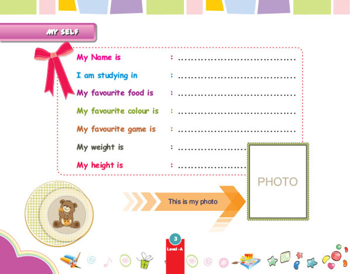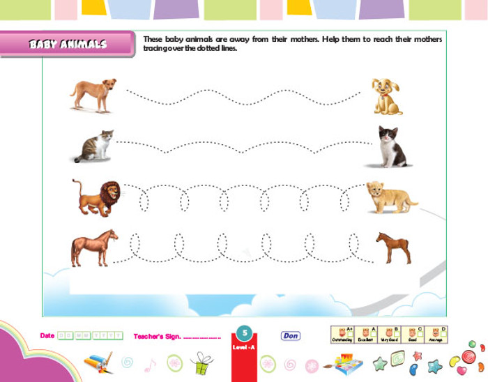 For LKG children, starts from writing lines to letters.