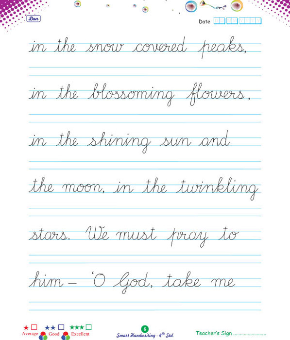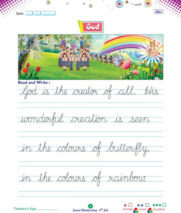 For 4th Std. students, with words and sentences  to practice writing with colourful background.