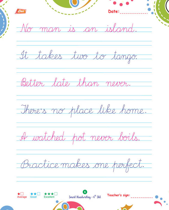 For 6th Std. students, with sentences  to practice writing with colourful background.